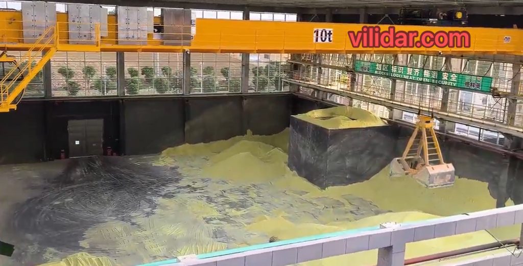 Greenmei’s sulfur warehouse spans tens of thousands of square meters, storing 100,000 tons of sulfur via heavy-duty cranes. Manual operations faced critical limitations: